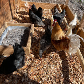 Im April haben wir den Hühnerstall richtig gut rausgewaschen und dann frisch gestrichen und neu eingerichtet. Die Junghühner, die heute bei uns angekommen sind, sollen sich bei uns wohl fühlen! Dafür sorgt auch der schon ein bisschen ältere und erfahrene Güggel Kuno: Er war heute sehr nervös, als der Stall plötzlich wieder voll Hühner war und hat ihnen sofort alles gezeigt. Er hat sie auf die Sitzstangen gelockt und in die Legenester und hat ihnen so gezeigt, wo sie schlafen und wo sie die Eier legen sollen. Die Rolle von einem männlichen Tier in der Herde ist nicht zu unterschätzen!
