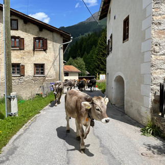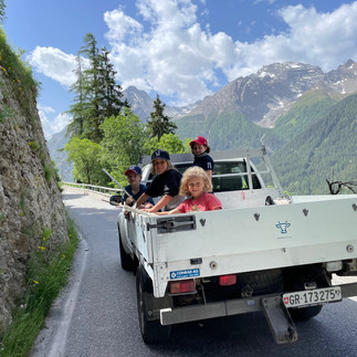 Es ist immer wieder schön, liebe Freunde hier zu haben. An diesen Tagen haben wir sehr vielseitige Arbeiten erledigt: Alpaufzug, Holz spalten, mit den Rindli durch das Dorf auf die neue Weide laufen, Gartenpflege und 200 Heuballen pressen. Und gut gegessen haben wir und die Abende in guter Gesellschaft genossen. Auch den Kindern wurde es nie langweilig. Sie kamen unermüdlich auf "gute" Ideen, was sie auch noch entdecken, ausprobieren oder mit ihren Spritzpistolen nass machen könnten...