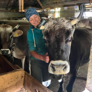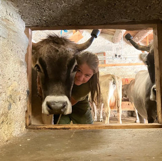 Gianna, unsere Teilzeit-Mitarbeiterin, verbrachte ihre Sommerferien auf der Alp. Sie unterstützte das Alpteam beim Ein- und Ausstallen, Melken und Weiden der Kühe, beim Putzen der Ställe, beim Käse schmieren, beim Joghurt und Butter machen und vielem mehr. Die Tage begannen um 3.00 Uhr morgens. So kam Gianna nach mehreren Wochen zwar müde, aber sehr fröhlich zurück, mit vielen Fotos, die wir hier zeigen möchten - danke Gianna!